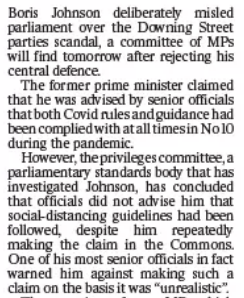 When Johnson said he inadvertently misled parliament, it struck me that what he meant was that, being accustomed to making his routine inaccuracies and distortions when speaking in parliament, and routinely getting away with it without any formal charge, he was inadvertent in failing to realise that on this occasion he would be held account for the accuracy of what he said.